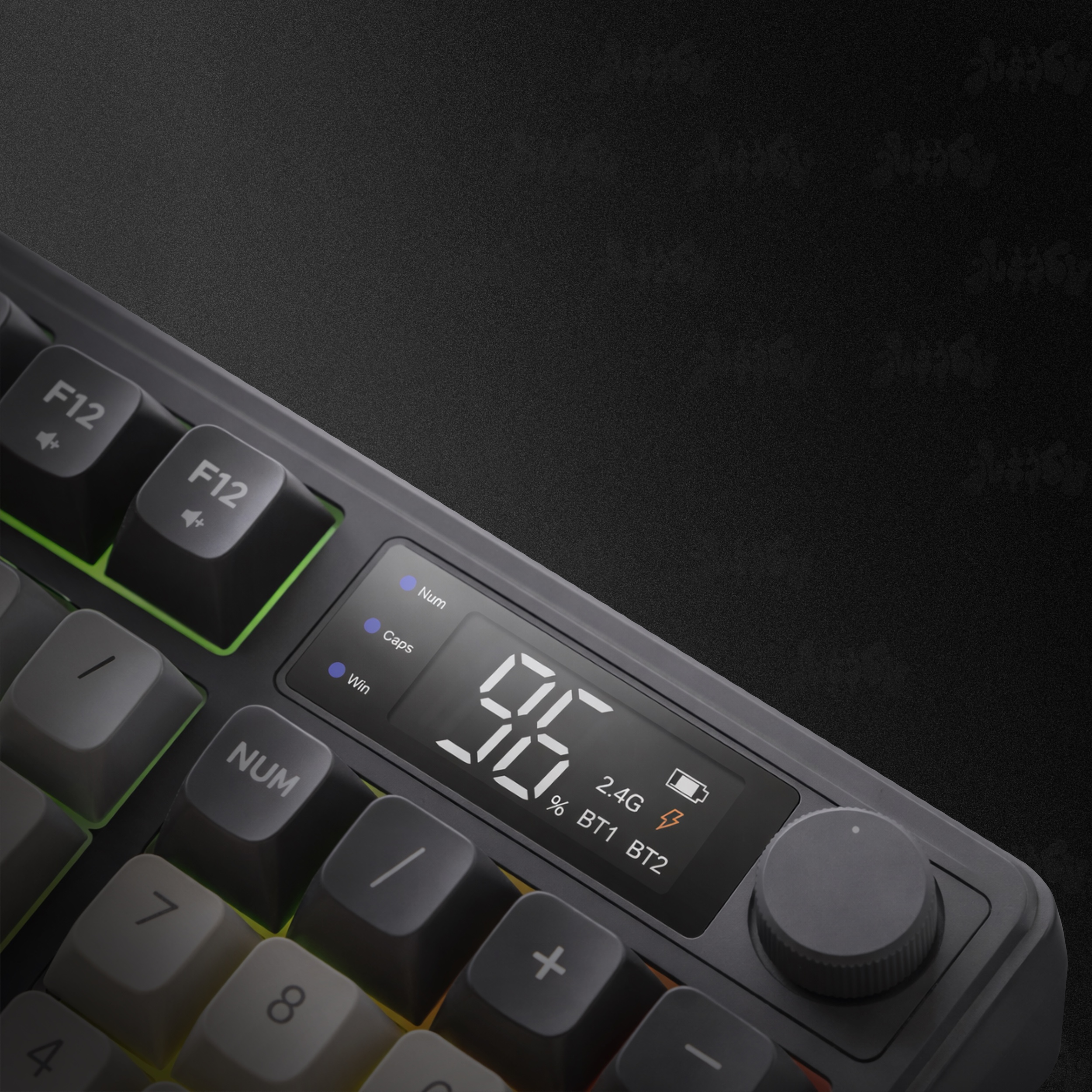 - ეკრანზე შეგიძლიათ გამოსახოთ ბატარეის პროცენტულობა და სხვა კლავიატურის ინფორმაცია